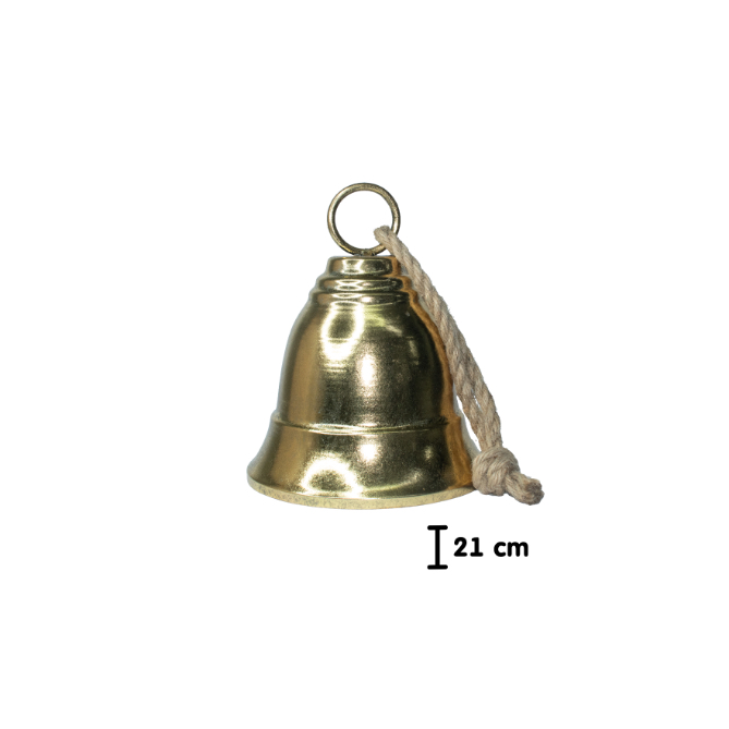 Campana metalica, de hierro. Dorado, de 21CM. Ideal para decorar en navidad, arboles, coronas, centros de mesa, balcones y cualquier espacio del hogar y oficina.