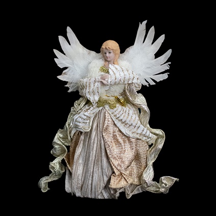 Angel decorativo dorado, ideal para decorar el copo de los arboles o complementar centros de mesa.