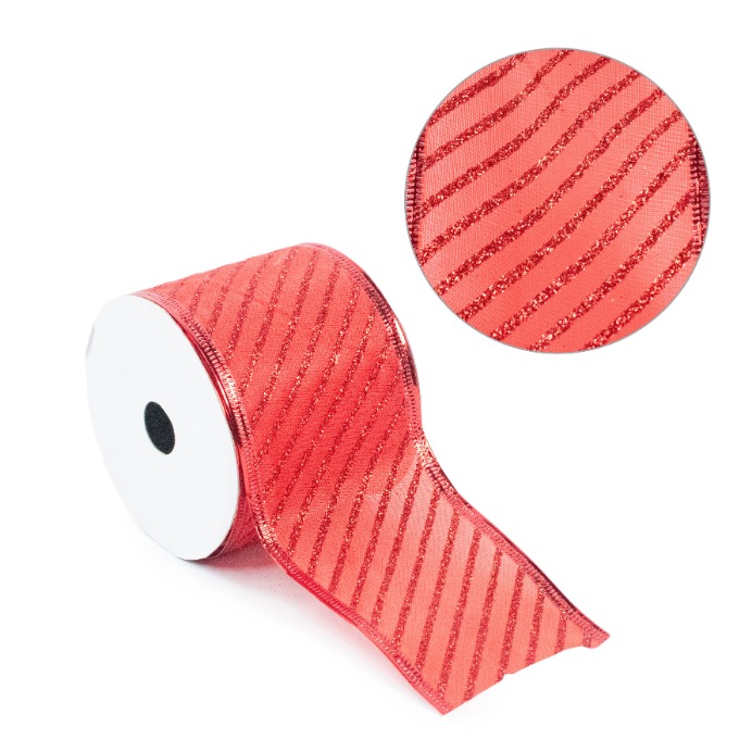 Cinta alambrada navideña roja, ideal en la elaboracion de moños para coronas, arboles, cortinas, centros de mesa, guirnaldas y obsequios.