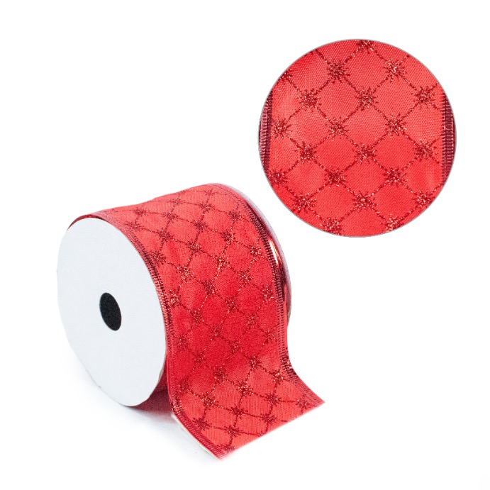 Cinta alambrada navideña roja, ideal en la elaboracion de moños para coronas, arboles, cortinas, centros de mesa, guirnaldas y obsequios.