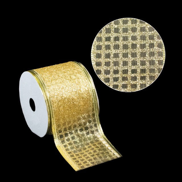 Cinta alambrada navideña dorada. Especial para todo tipo de decoración navideña, empaques y moños.