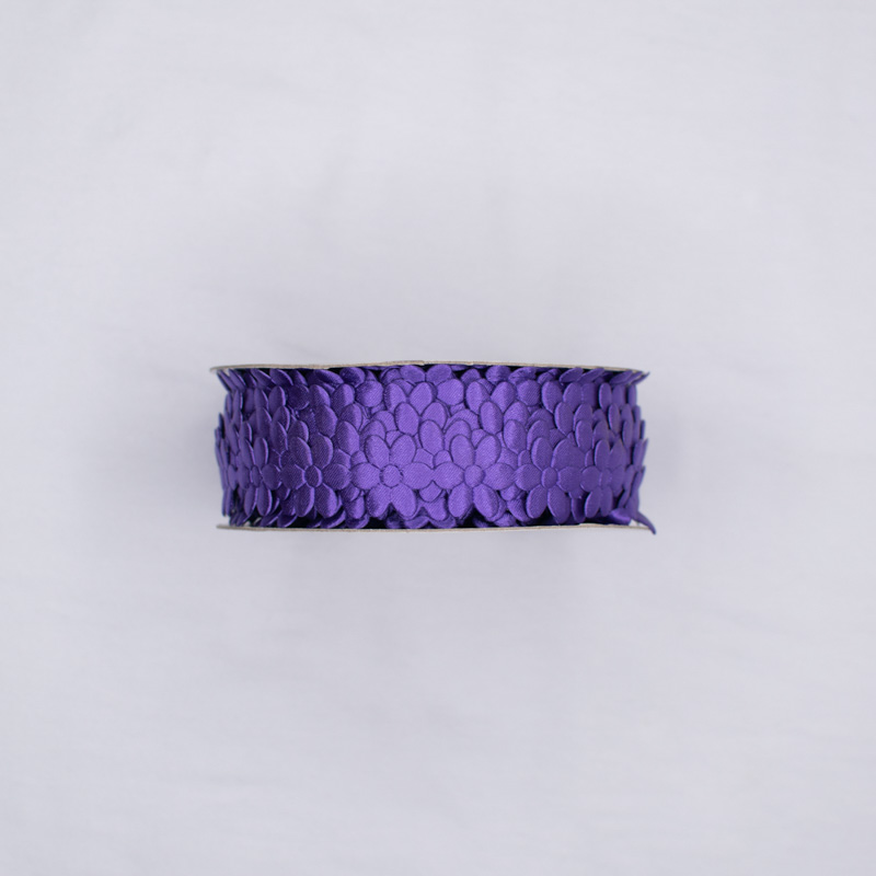 Cinta aplique flor #3 morado, decorativo para prendas y peinados infantiles, excelente calidad.