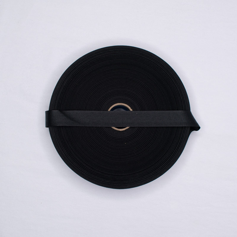 Cinta faya americana 10mm. negro, 100% poliester. Para uso de confeccion, moños, decoración, escarapelas, calzado, marroquinería, accesorios, litografía, manualidades, marquillas y empaques.