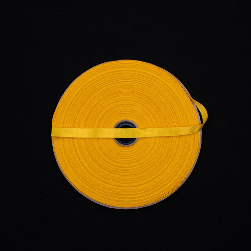 Cinta faya industrial 10mm. amarillo yema 2001, 100% poliester. Para uso de confeccion, moños, decoración, escarapelas, calzado, marroquinería, accesorios, litografía, manualidades, marquillas y empaques.