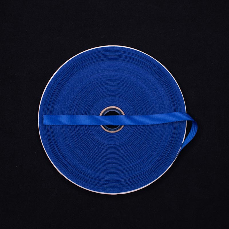 Cinta faya industrial 10mm. azul rey 4026, 100% poliester. Para uso de confeccion, moños, decoración, escarapelas, calzado, marroquinería, accesorios, litografía, manualidades, marquillas y empaques.