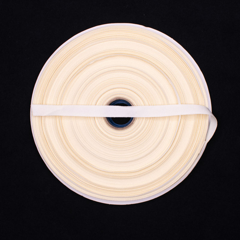 Cinta faya industrial 10mm. crudo 1008, 100% poliester. Para uso de confeccion, moños, decoración, escarapelas, calzado, marroquinería, accesorios, litografía, manualidades, marquillas y empaques.