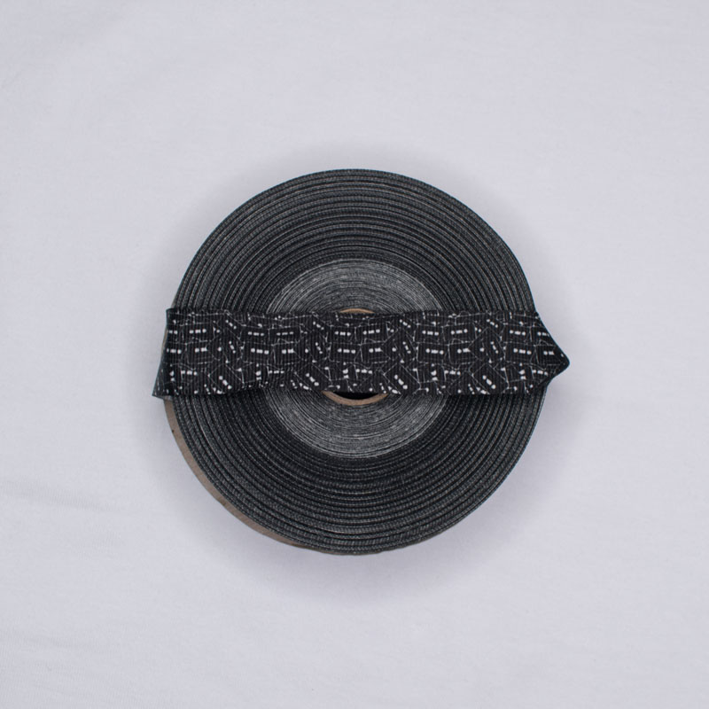 Cinta faya industrial estampada 25mm. cassete blanco, 100% poliester. Para uso de confeccion, moños, decoración, escarapelas, calzado, marroquinería, accesorios, litografía, manualidades, marquillas y empaques.