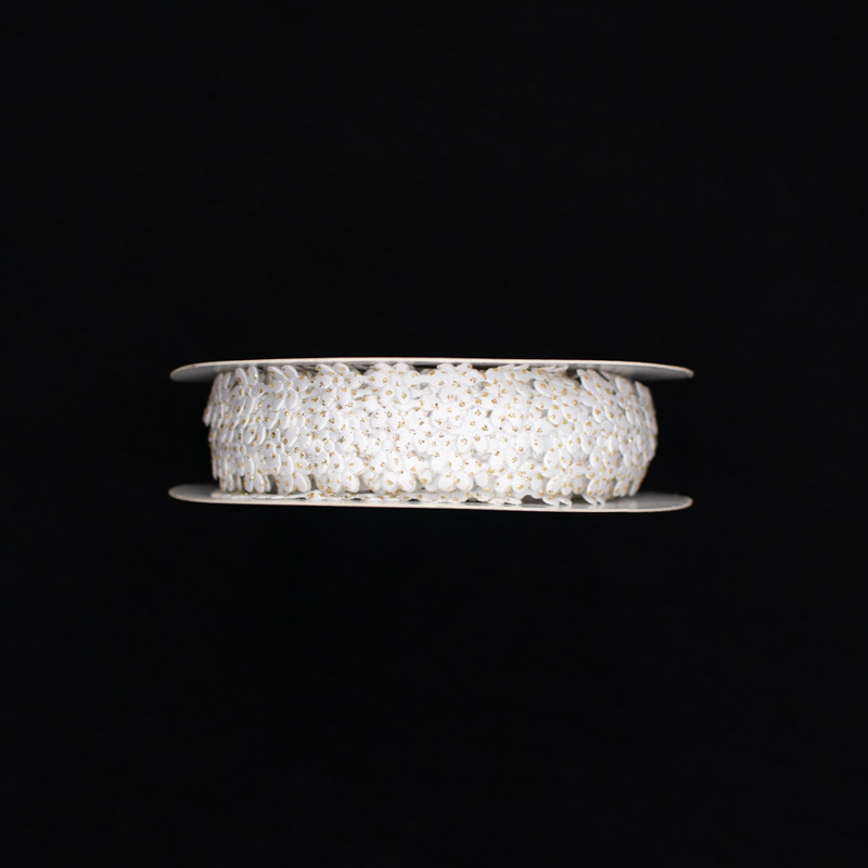Cinta floricienta #2 blanco dorado, especial en la elaboracion de peinados infantiles, prendas como blusas, vestidos, accesorios y acabados.