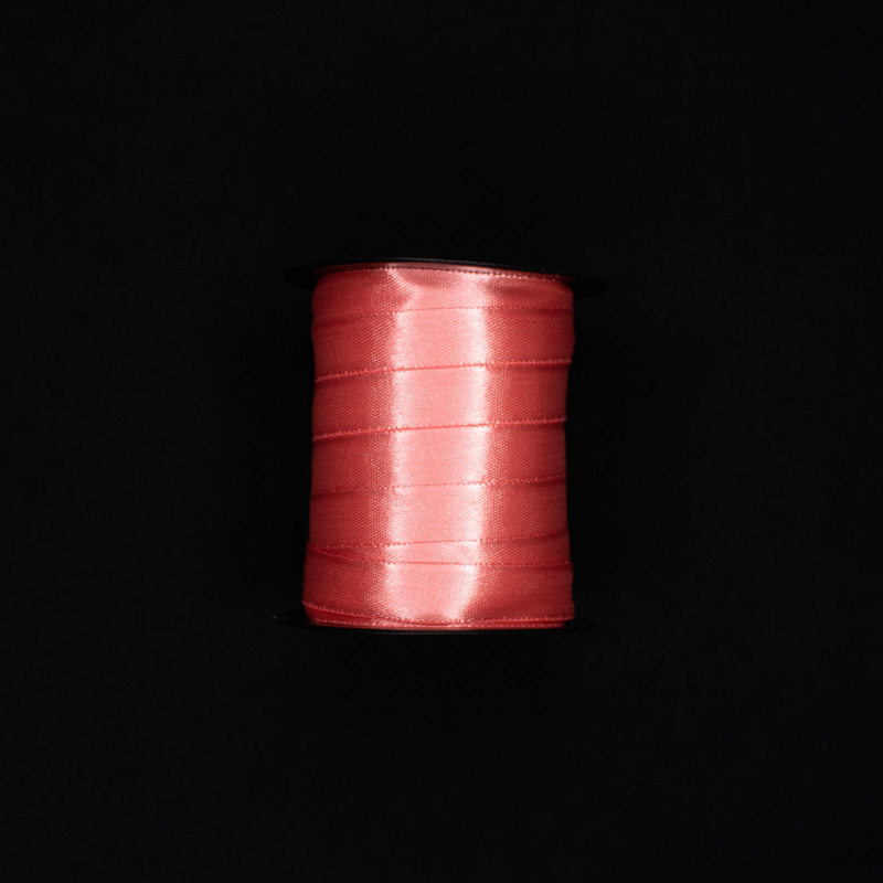 Cinta raso economica 13mm. coral 3223, 100% poliester. Con apariencia satinada, textura y calidad, para uso decorativo en accesorios infantiles confeccion, moños, escarapelas, marroquinería, manualidades, etiquetas y empaques.