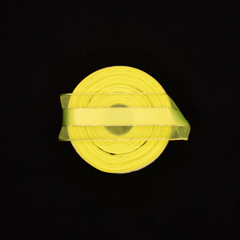 Cinta satin lurex dorado 11/2 amarillo neon 07, composicion 95% nylon y 5% metalico. Ideal para todo tipo de moños, regalos, decoraciones y manualidades.