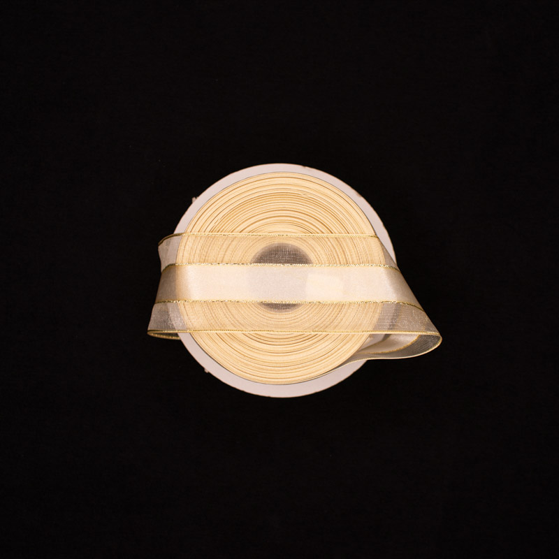 Cinta satin lurex dorado 11/2 beige 810, composicion 95% nylon y 5% metalico. Ideal para todo tipo de moños, regalos, decoraciones y manualidades.