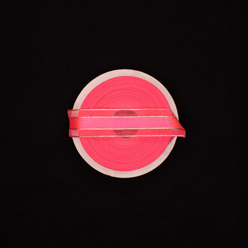 Cinta satin lurex dorado 7/8 fucsia neon, composicion 95% nylon y 5% metalico. Ideal para todo tipo de moños, regalos, decoraciones y manualidades.