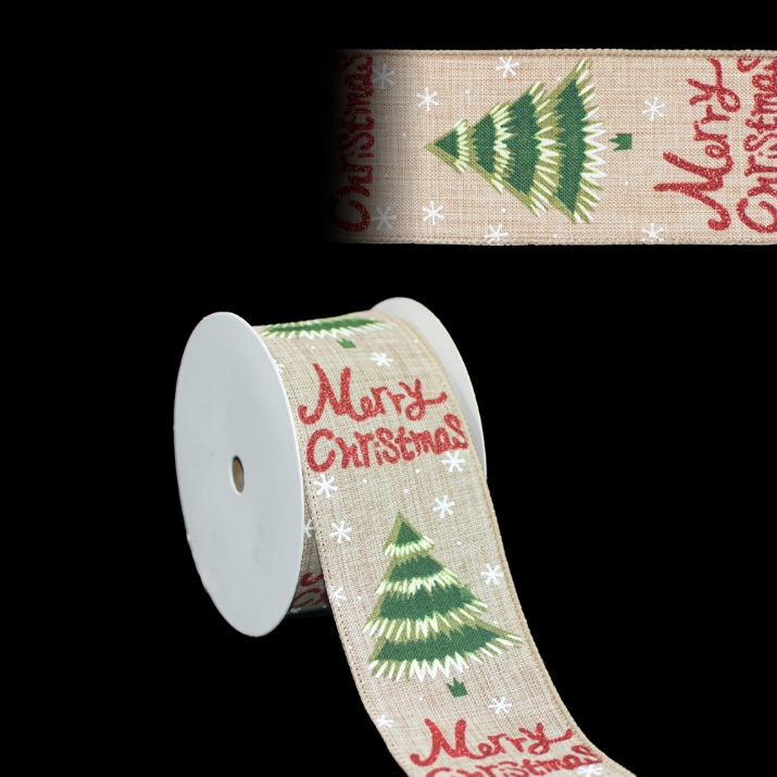Cinta decorativa alambrada de yute, natural. De 6.3CM. X 9M. Especial para todo tipo de decoración navideña, empaques y moños