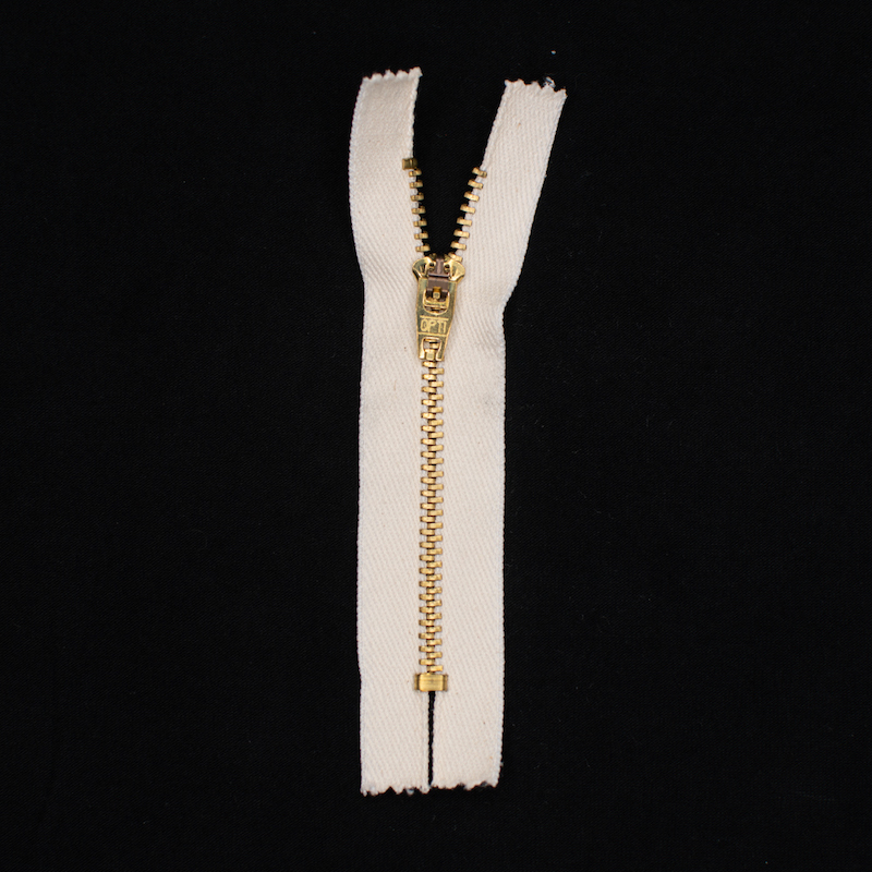 Cremallera cobre 4.5 opti 10cm. natural, cinta 100% poliester y fleje laton, especial en el trabajo de prendas pesadas como: jeans, chaquetas, marroquineria y confeccion.