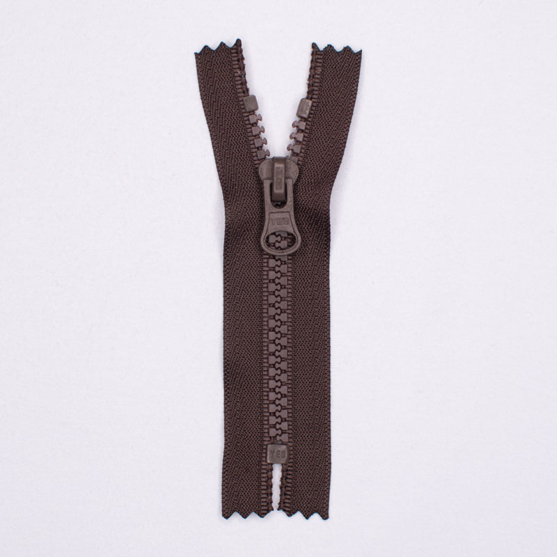 Cremallera delrhin 5.0 separable 10cm. cafe oscuro, 100% poliester, con extremo superior abierto, excelente calidad y textura, resistente a la humedad, especial para el trabajo de confeccion y prendas unisex, para abrigos, mochilas y cazadoras.