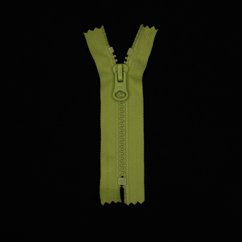 Cremallera delrhin 5.0 separable 10cm. verde pistacho, 100% poliester, con extremo superior abierto, excelente calidad y textura, resistente a la humedad, especial para el trabajo de confeccion y prendas unisex, para abrigos, mochilas y cazadoras.