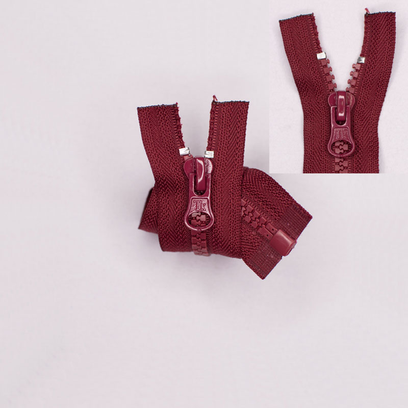 Cremallera delrhin 5.0 separable 25cm. vinotinto, 100% poliester, con extremo superior abierto, excelente calidad y textura, resistente a la humedad, especial para el trabajo de confeccion y prendas unisex, para abrigos, mochilas y cazadoras.