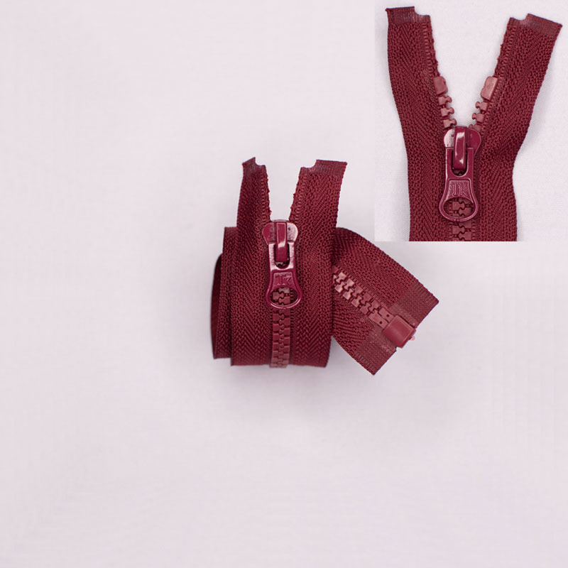 Cremallera delrhin 5.0 separable 30cm. vinotinto, 100% poliester, con extremo superior abierto, excelente calidad y textura, resistente a la humedad, especial para el trabajo de confeccion y prendas unisex, para abrigos, mochilas y cazadoras.