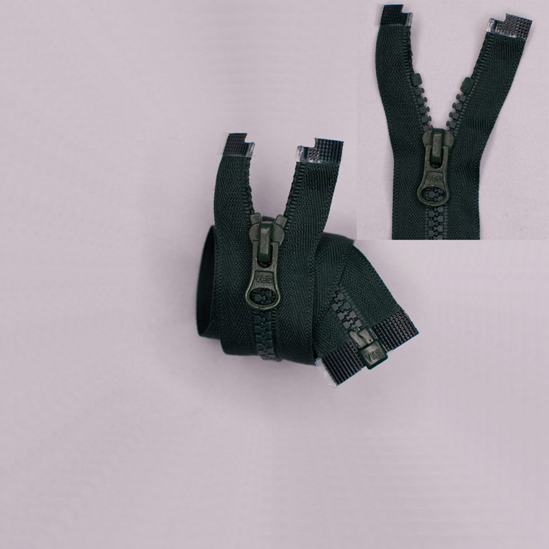 Cremallera delrhin 5.0 separable 40cm. verde botella, 100% poliester, con extremo superior abierto, excelente calidad y textura, resistente a la humedad, especial para el trabajo de confeccion y prendas unisex, para abrigos, mochilas y cazadoras.