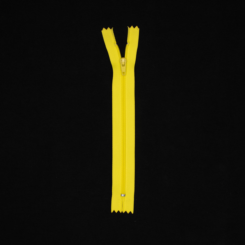 Cremallera poliester 3.0 17cm. amarillo fluorescente, 100% poliester, especial para todo tipo de confeccion de prendas unisex. Para vestidos, faldas, blusas, camisetas, pantalones, cojines y bolsos.