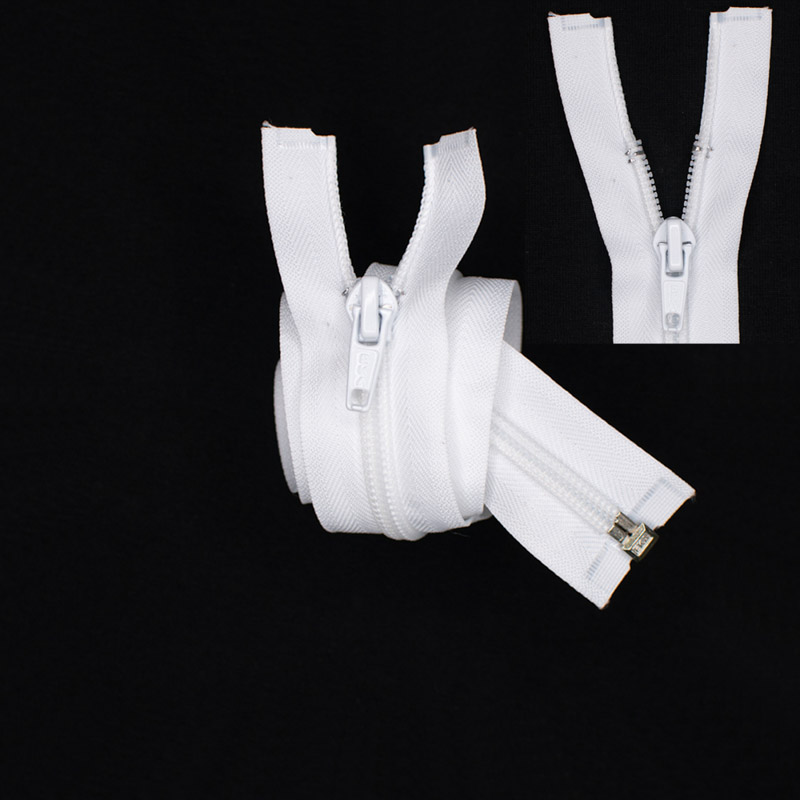 Cremallera poliester separable 5.0 75cm. blanco, 100% poliester, especial para todo tipo de confeccion de prendas unisex. Para vestidos, faldas, blusas, camisetas, pantalones, cojines y bolsos.