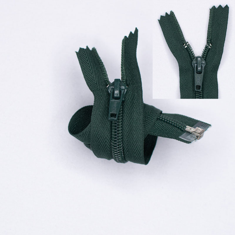 Cremallera poliester separable 6.0 25cm. verde salvaje, 100% poliester, especial para todo tipo de confeccion de prendas unisex. Para vestidos, faldas, blusas, camisetas, pantalones, cojines y bolsos.