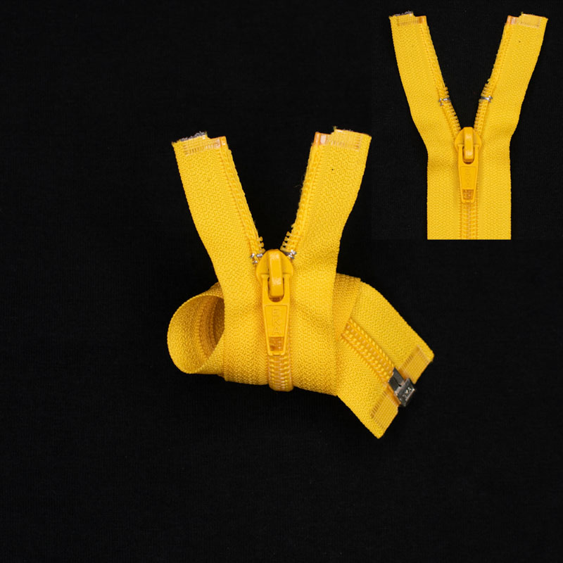 Cremallera poliester separable 6.0 40cm. amarillo oro, 100% poliester, especial para todo tipo de confeccion de prendas unisex. Para vestidos, faldas, blusas, camisetas, pantalones, cojines y bolsos.