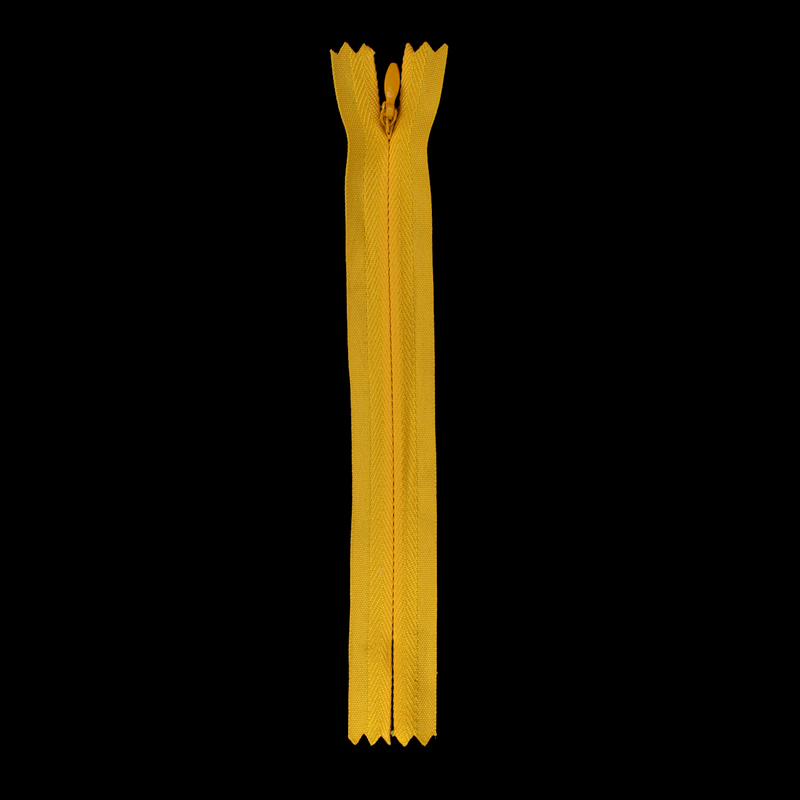 Cremallera invisible 15cm. amarillo oro, poliester. Especial para confeccion de prendas femeninas e infantiles que requieran ocultar los dientes de la cremallera. Ideal para vestidos, faldas, blusas y cojines. Amplia gama de colores.
