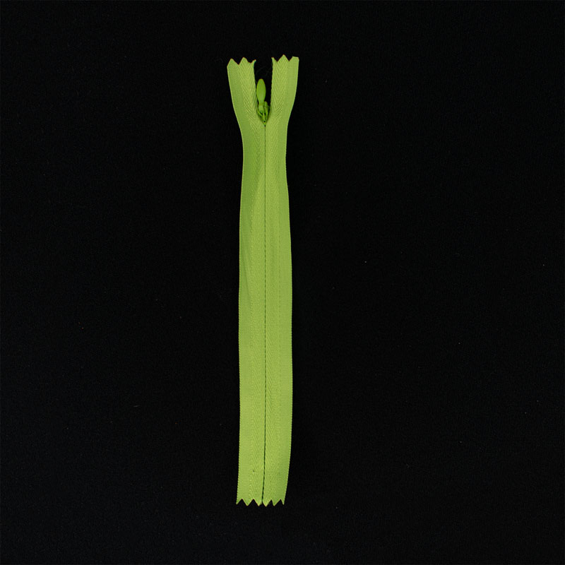 Cremallera invisible 30cm. verde citrico, poliester. Especial para confeccion de prendas femeninas e infantiles que requieran ocultar los dientes de la cremallera. Ideal para vestidos, faldas, blusas y cojines. Amplia gama de colores.