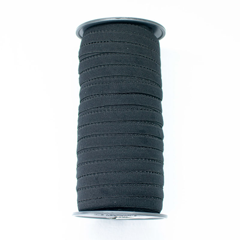 Elástico base 10mm. negro, permite manipular con facilidad por su elasticidad y suavidad, Trabajable en usos generales, excepto pretinas.