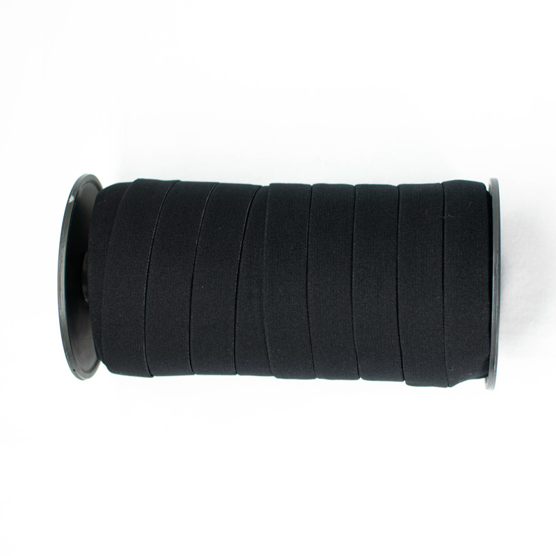 Elástico boxer 20mm. negro, 88% poliamida, 12% elastano. Ideal para la fabricación de ropa interior masculina, su excelente presentación y suavidad permite emplearlo en pretinas expuestas.