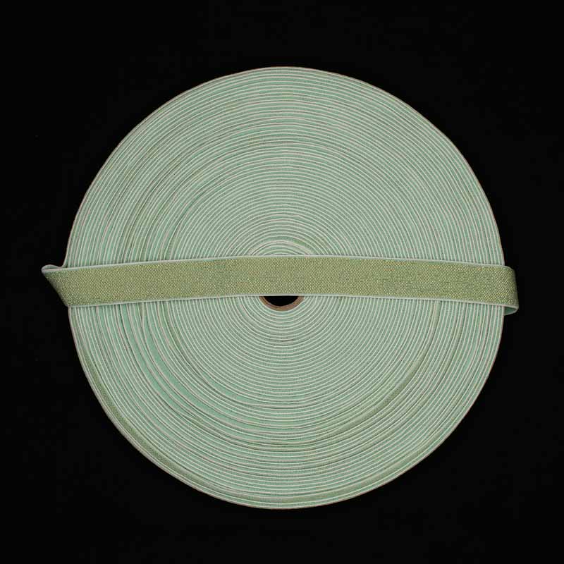 Elástico lurex oro 25mm. verde agua, decorativo para todo tipo de prendas femeninas e infantiles tales como: blusas, vestidos, pretinas, pantalones y acabados.