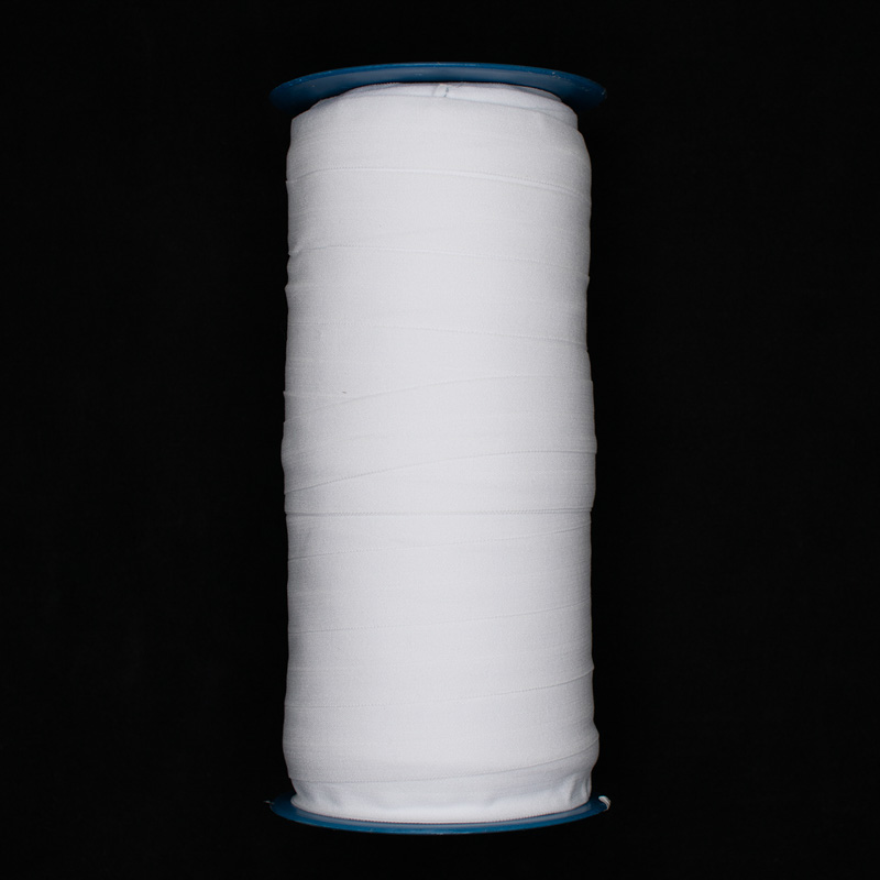 Elástico plano 068/20 20mm. blanco, especial para la fabricación de prendas interiores, por su flexibilidad y suavidad es usada generalmente en tiras para brasier.