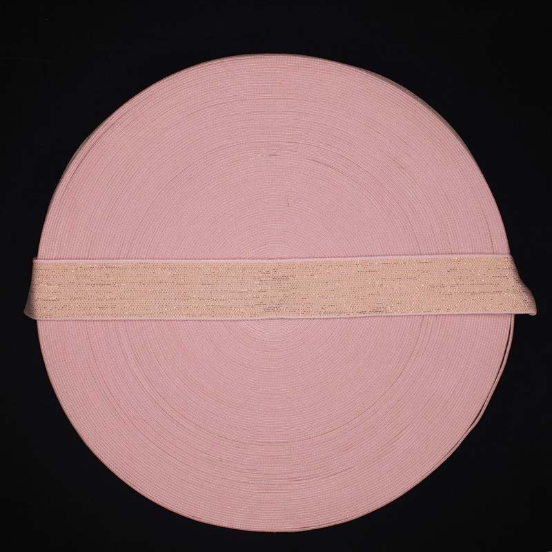 Elástico plano lurex 227/30 30mm. rosado claro lurex oro, especial para uso externo en prendas infantiles y femeninas.