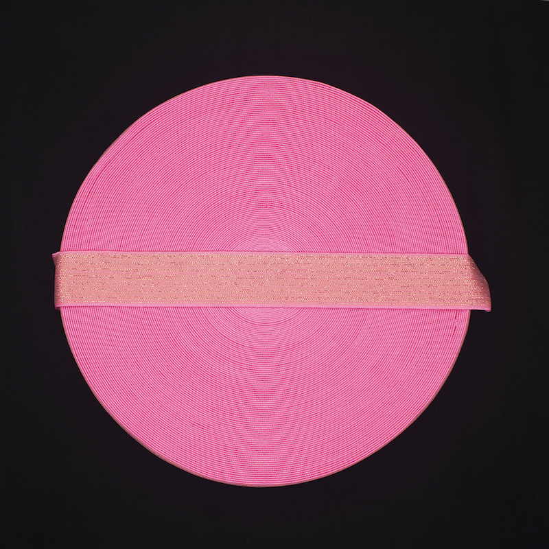 Elástico plano lurex 227/30 30mm. rosado lurex oro, especial para uso externo en prendas infantiles y femeninas.