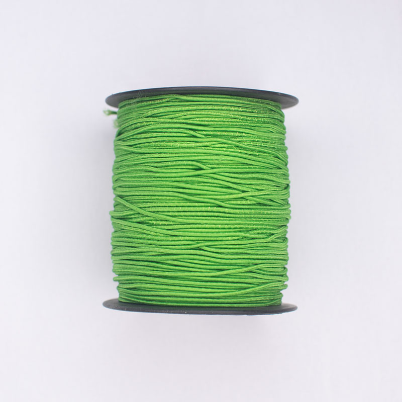 Elástico redondo verde limon, especial para el proceso de encarterar(interno), utilizado para ropa de hogar, fundas ajustables, prendas de vestir y tapabocas.