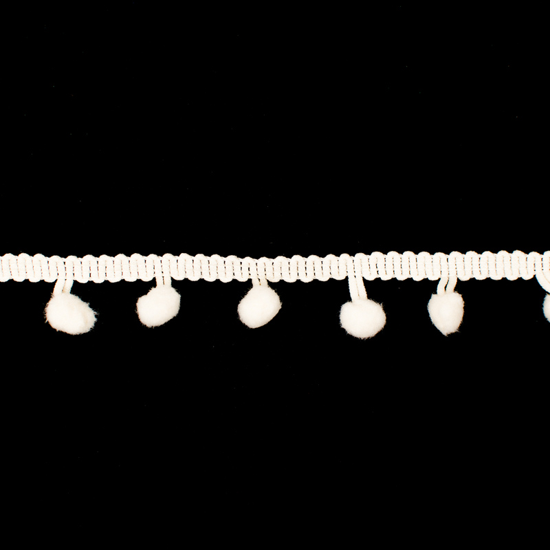 Fleco pompon mp-10 beige, nylon. Especial en el trabajo de prendas femeninas e infantiles, decorativo para blusas, faldas, vestidos en general y de danza, cojines, ruanas, salidas de baño y cortinas. Es versátil, de tacto suave y buen movimiento.