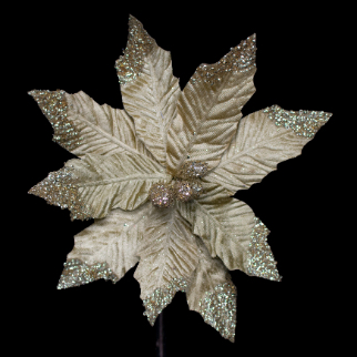 Flor navideña, decorativa, dorada, 28CM. Ideal para decorar arboles, coronas, guirnaldas y espacios en general.