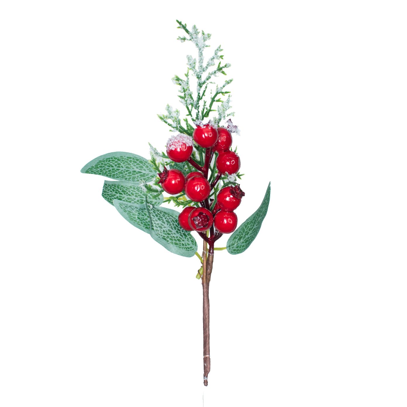 Follaje con frutos rojos, cubierto ligeramente con una capa de nieve. De 21CM. Ideal para todo tipo de decoración.