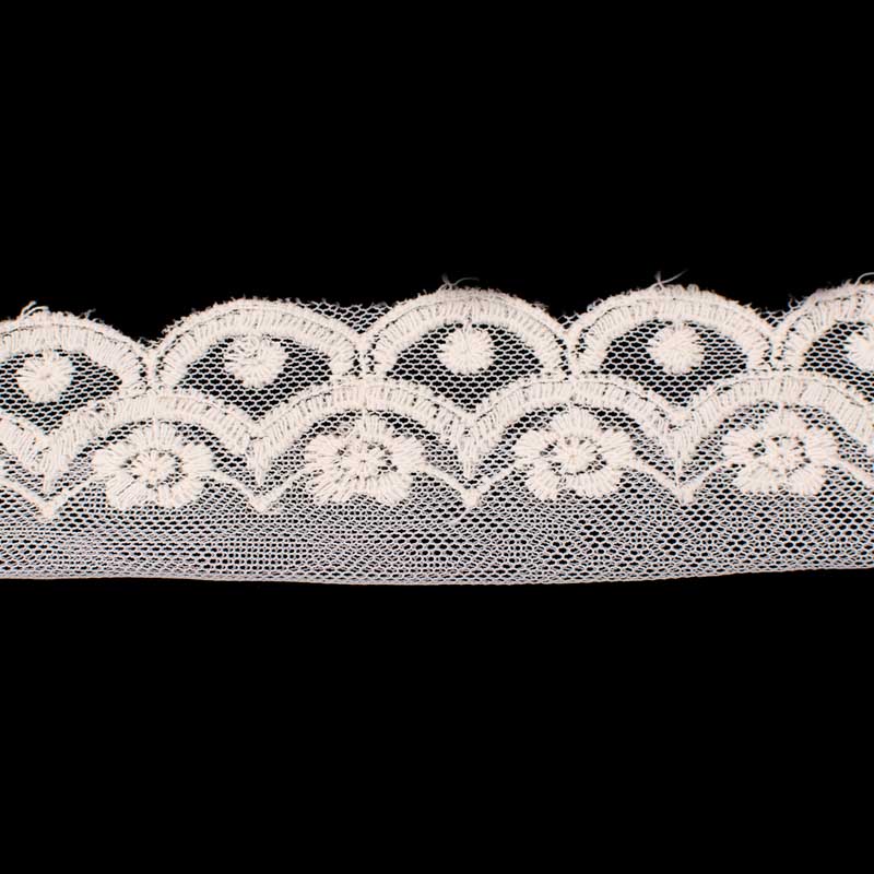 Guipure organza 8.5cm. beige, algodon. Decorativo para prendas femeninas e infantiles de uso expuesto, para blusas, vestidos, faldas, chaquetas y accesorios. Excelente calidad, textura suave y variedad de estilos.