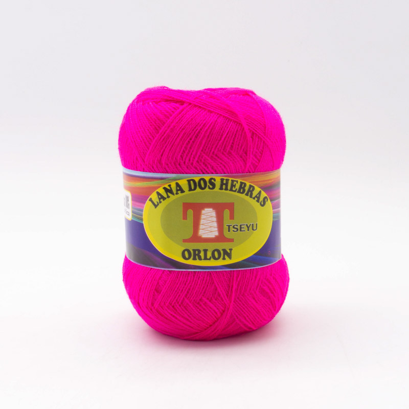 Lana dos hebras fucsia, fibra 100% acrilica y antialergica, 50 gramos.