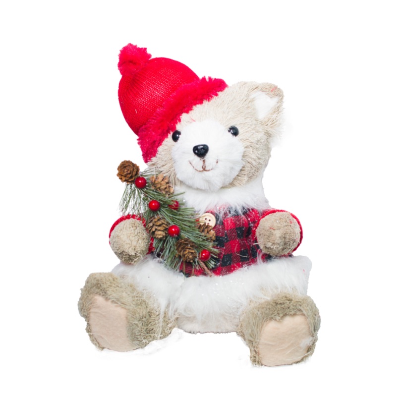 Oso de 24CM. Con gorro y vestido a cuadros. Ideal para todo tipo de decoración navideña.