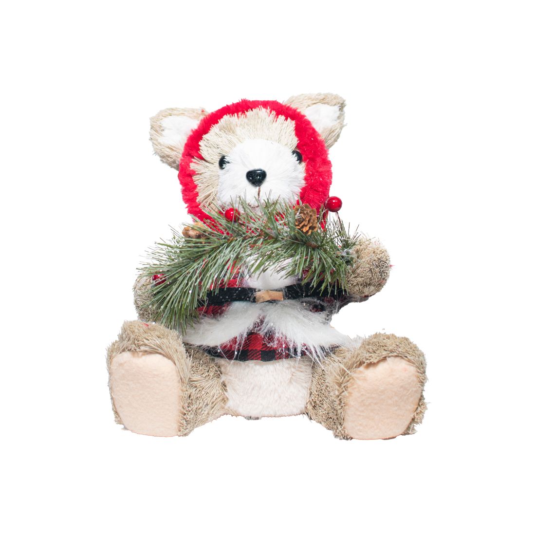 Oso sentado con corona navidela de 22CM. Ideal para todo tipo de decoración navideña.