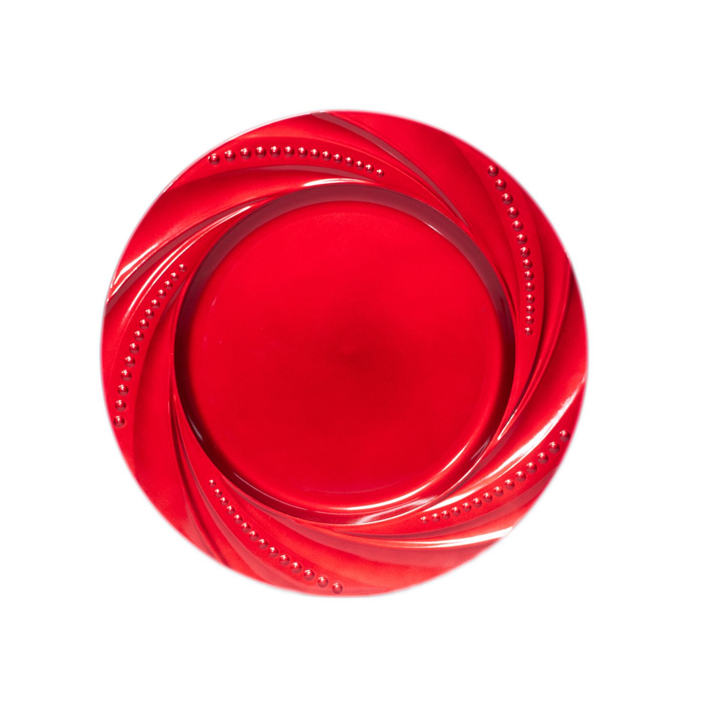 Plato decorativo, rojo, de 33X33X1.5 CM. Sirve como base en la mesa o para elaborar diferentes arreglos y adornos, en navidad y otras tamporadas.
