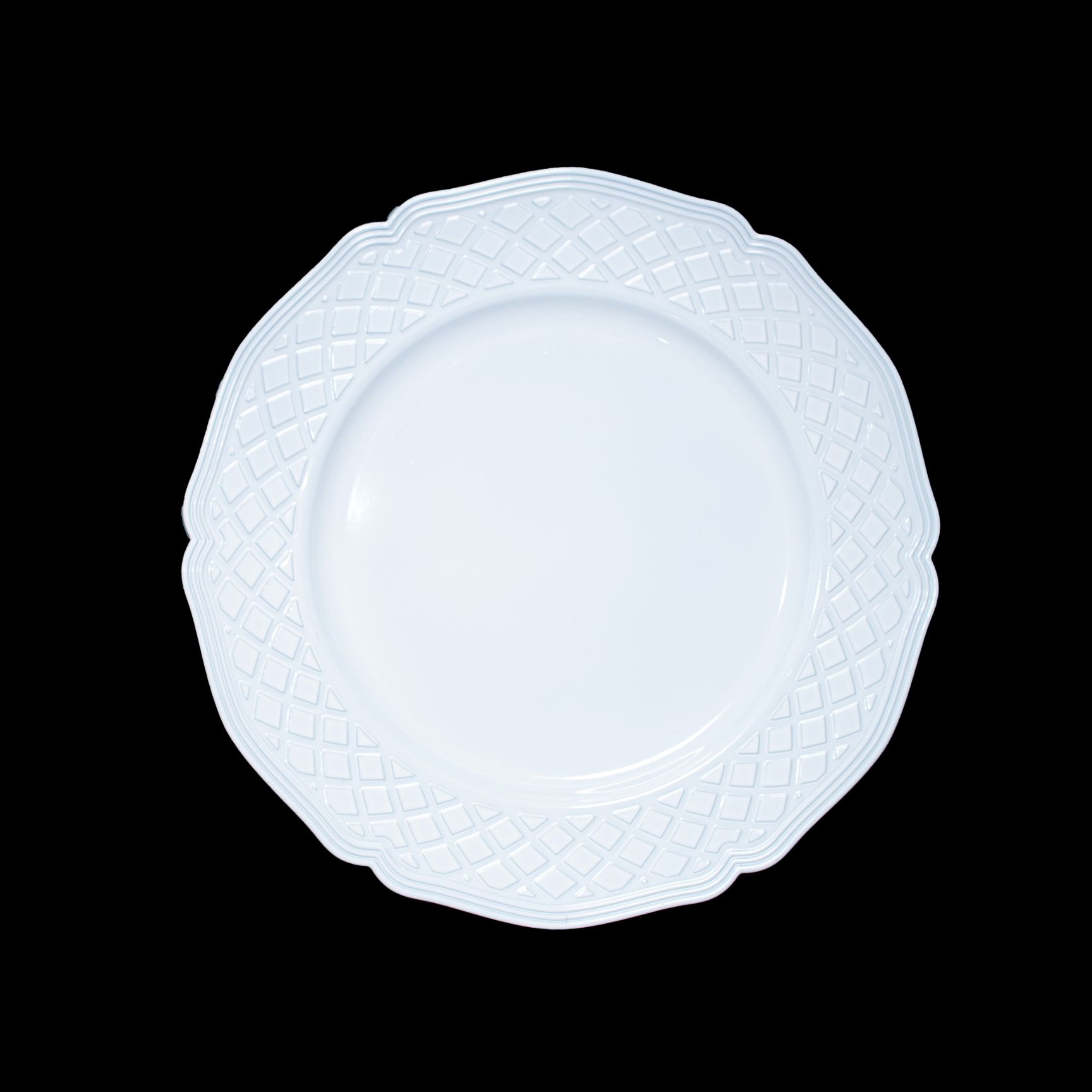 Plato decorativo, blanco, de 33X33X1.5 CM. Sirve como base en la mesa o para elaborar diferentes arreglos y adornos, en navidad y otras tamporadas.