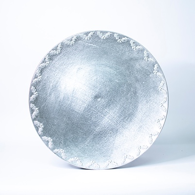 Plato redondo con borde muerdago plata. Alto 35cm – Ancho 35cm.