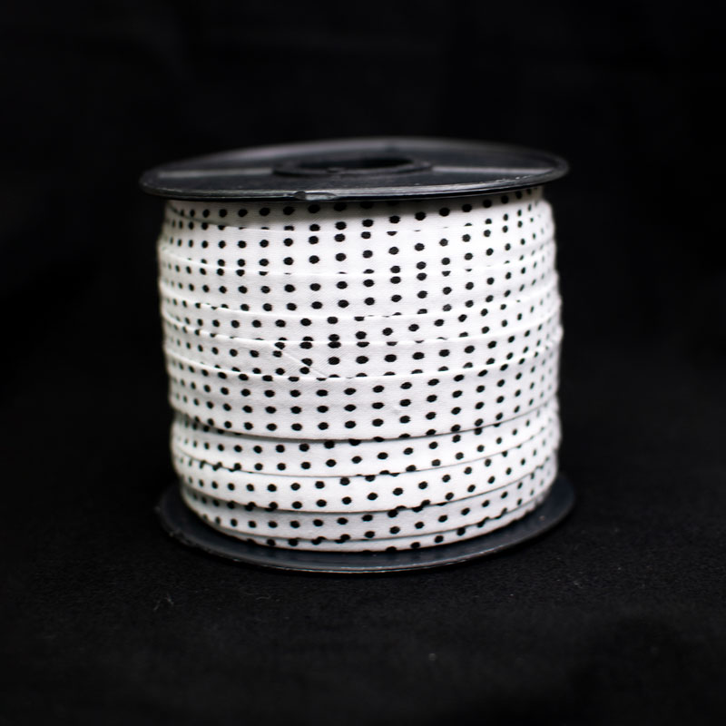 Sesgo planchado puntos 16mm. blanco, algodon. Decorativo para prendas femeninas e infantiles como blusas, faldas y vestidos, especial para ribetear, envivar, unir, reforzar y cubrir costuras.