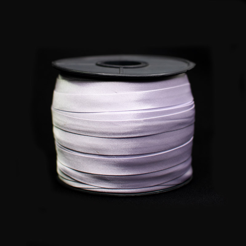 Sesgo 13mm. lila, satinado. Decorativo para prendas femeninas e infantiles como blusas, faldas y vestidos, especial para ribetear, envivar, unir, reforzar y cubrir costuras.